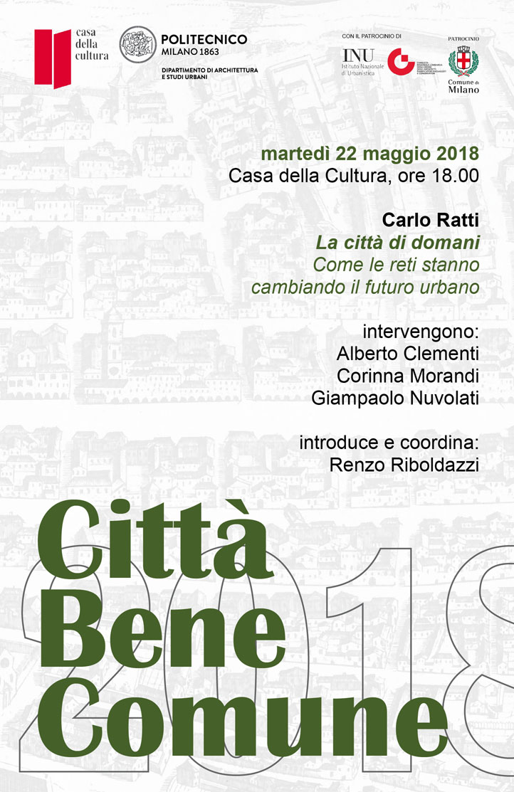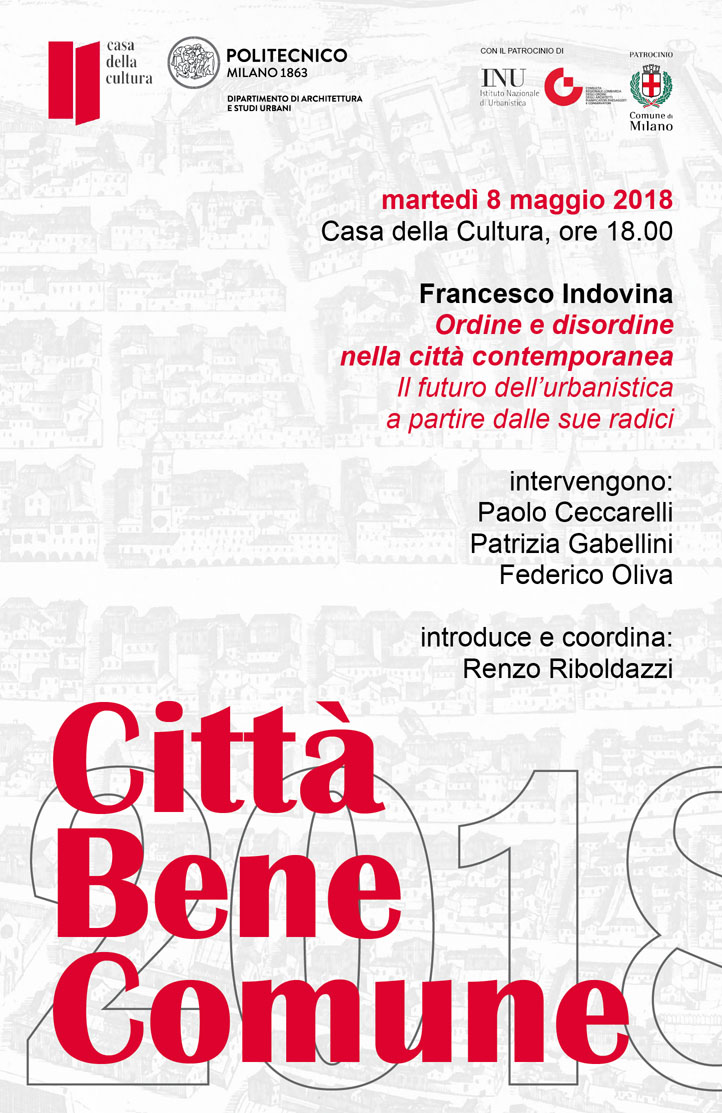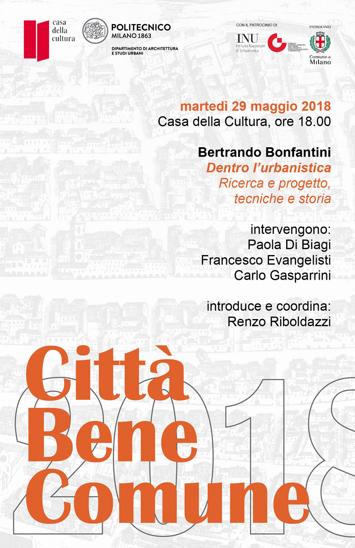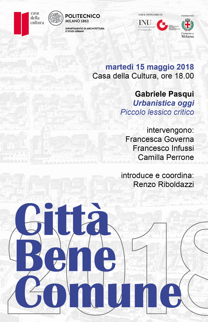 L’Istituto Nazionale di Urbanistica patrocina la sesta edizione di Città bene comune, il ciclo di incontri di cultura del progetto urbano che si terranno l’8 maggio, il 15 maggio, il 22 maggio e il 29 maggio prossimi alla Casa della Cultura di Milano. Il comunicato stampa