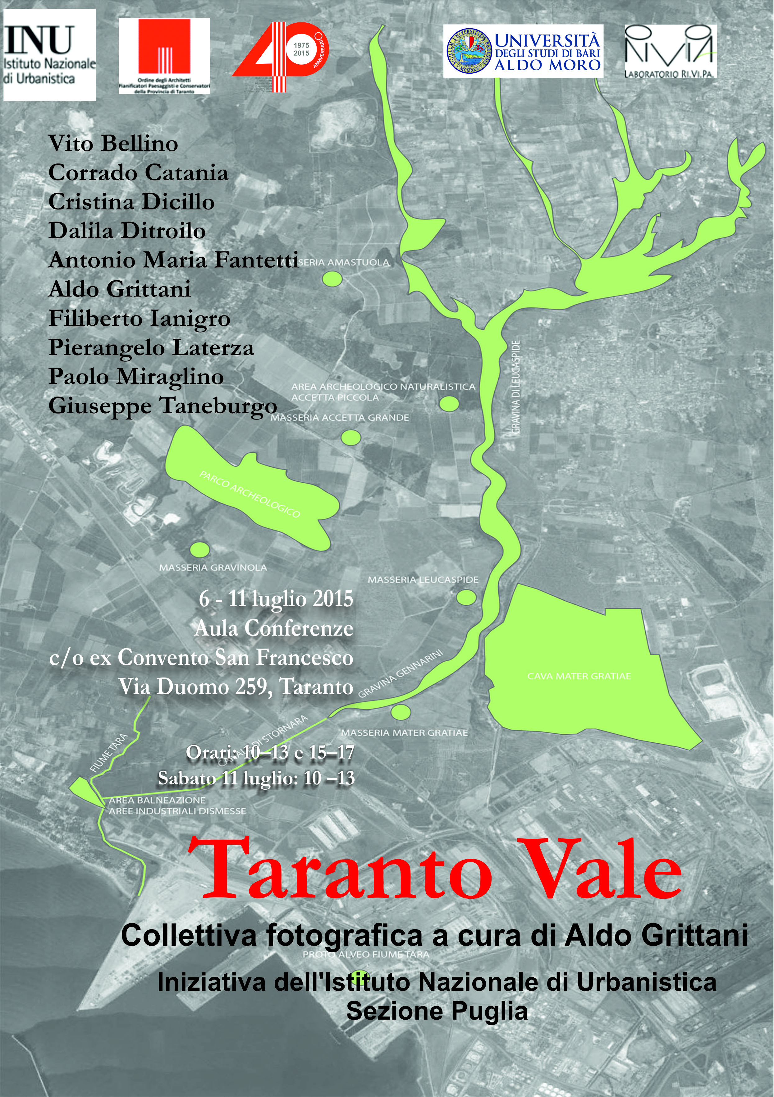 Dal 6 all’11 luglio 2015 presso l’Aula conferenze c/o ex Convento San Francesco di via Duomo 259, a Taranto (Orari: 10 – 13 e 15 – 17 – sabato 11 luglio: 10 – 13), una collettiva fotografica sui luoghi di Taranto dedicata alla memoria e all’impegno di Valentina Carpitella. La mostra sarà presentata mercoledì 8 luglio dalle 18 alle 22. È un’iniziativa destinata a proseguire. La presentazione e la locandina